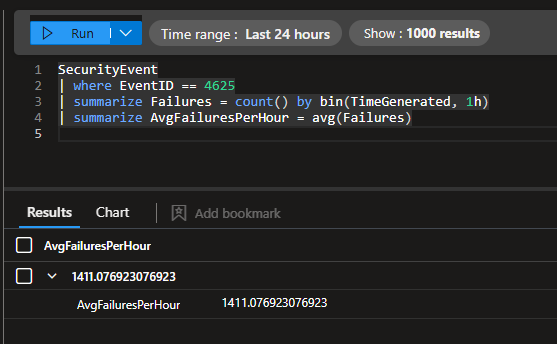 This query gives us an estimate of the number of failed login attempts per hour, which ended up being ~1,411