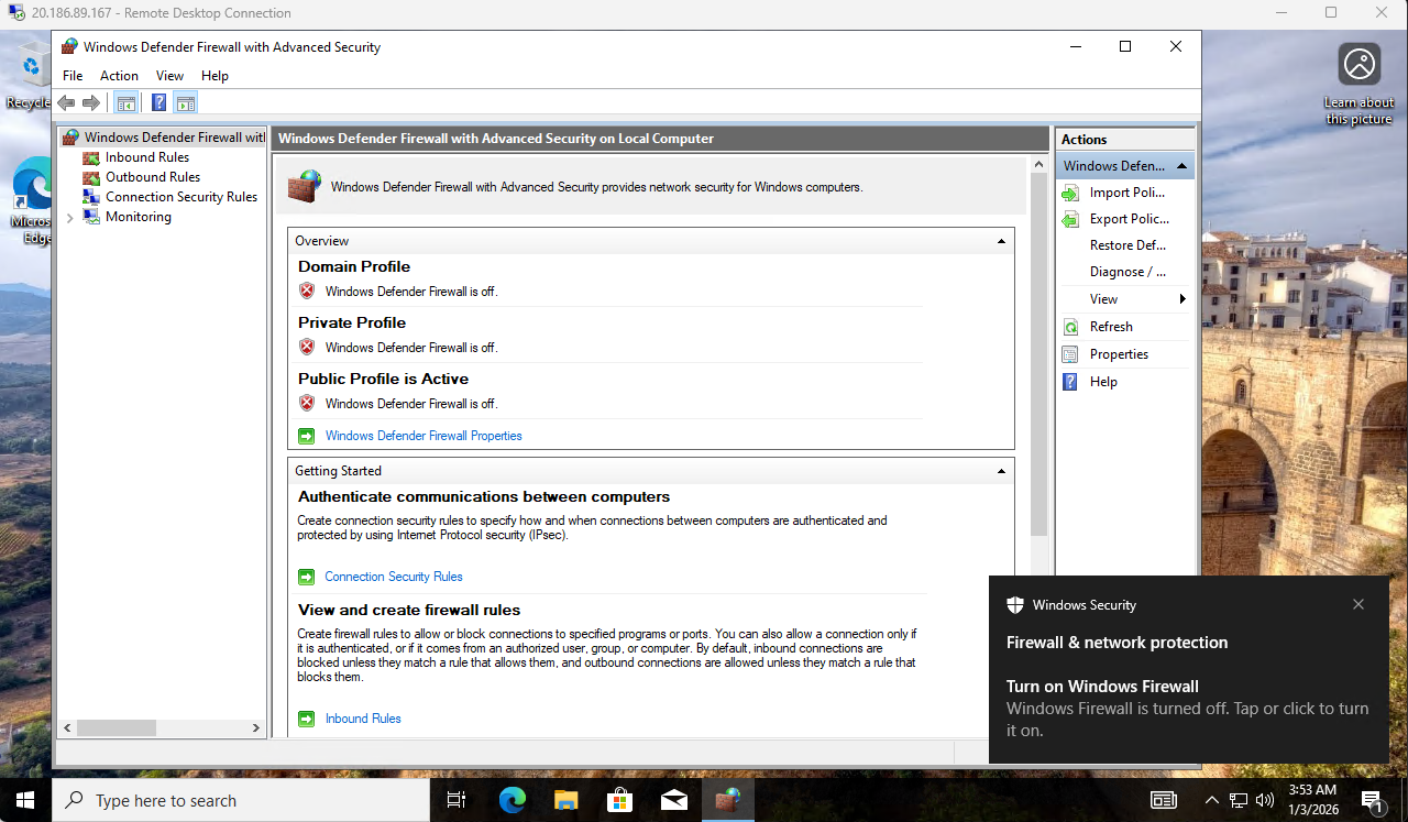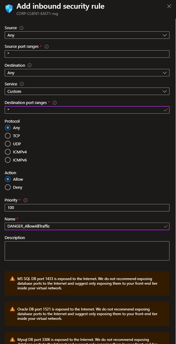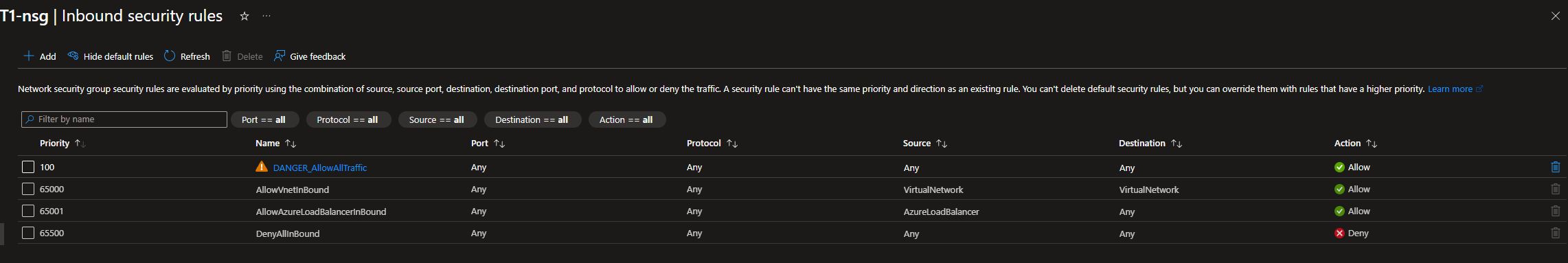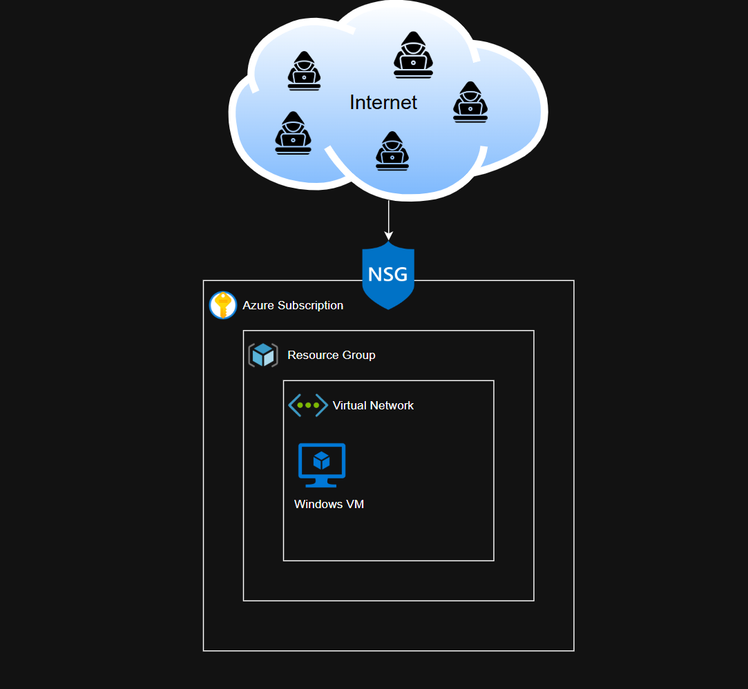 By the end of this exercise, we will have a resource group, virtual network, a network security group (NSG), and a VM within that virtual network. These resources are all under the same subscription. The VM will be open to ALL traffic, so any endpoint should be able to RDP into it.