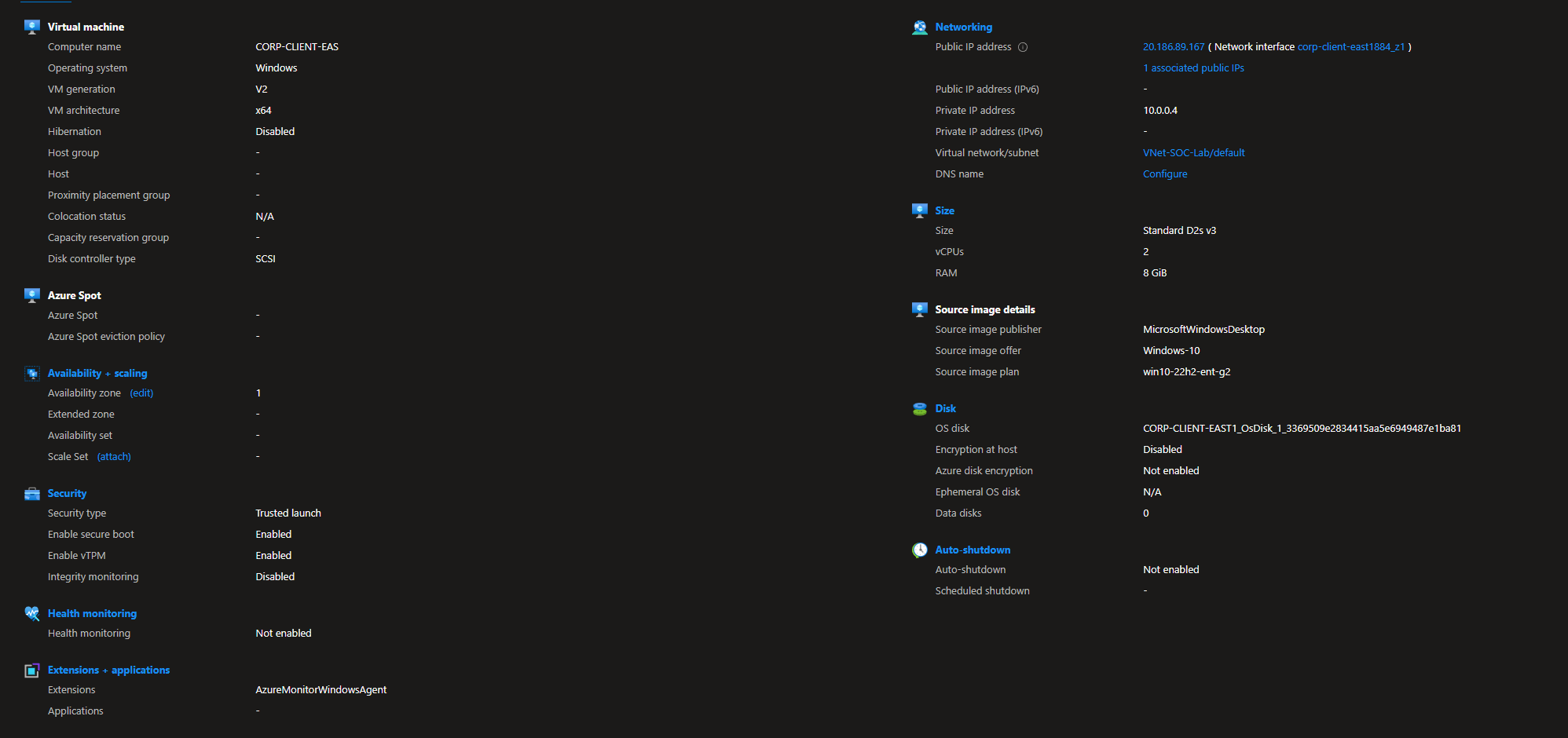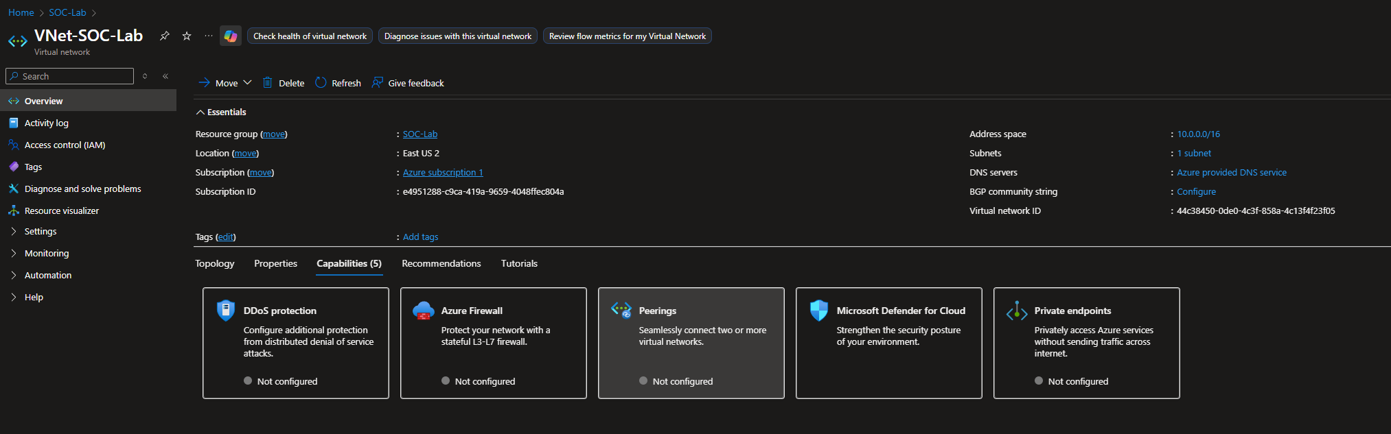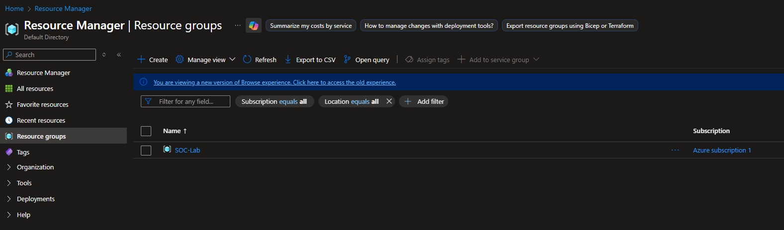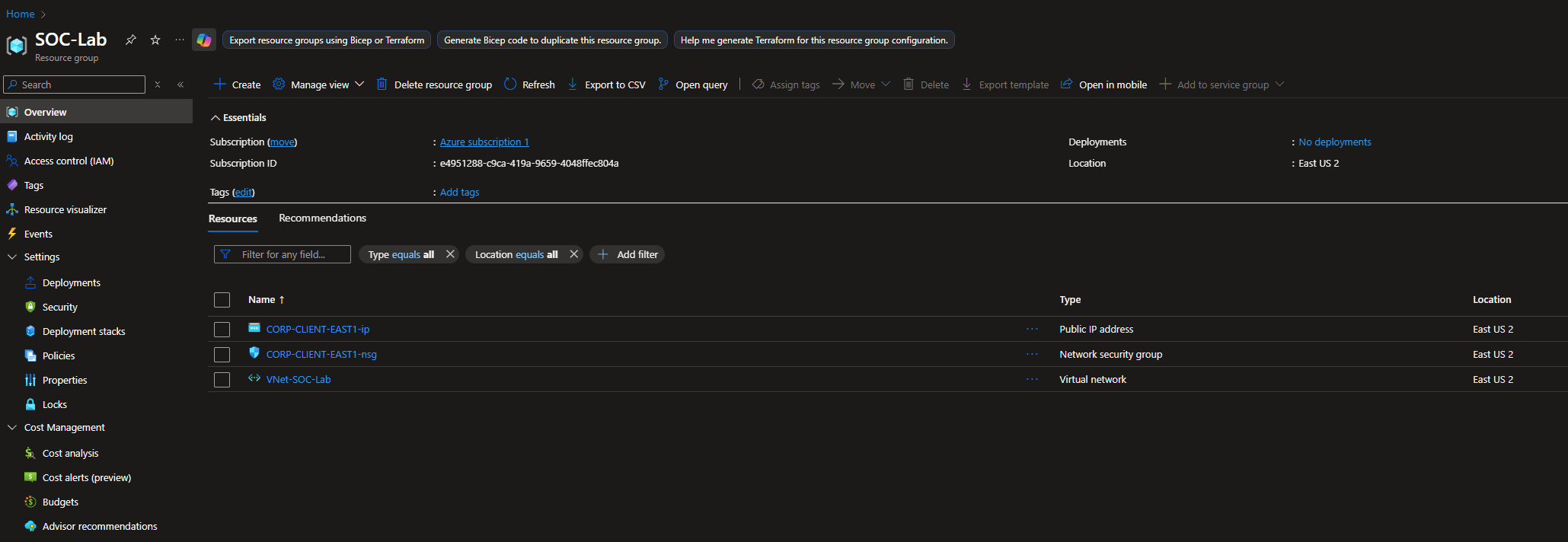 Make sure to select the appropriate RG (SOC-Lab), Azure subscription and region (East US 2)