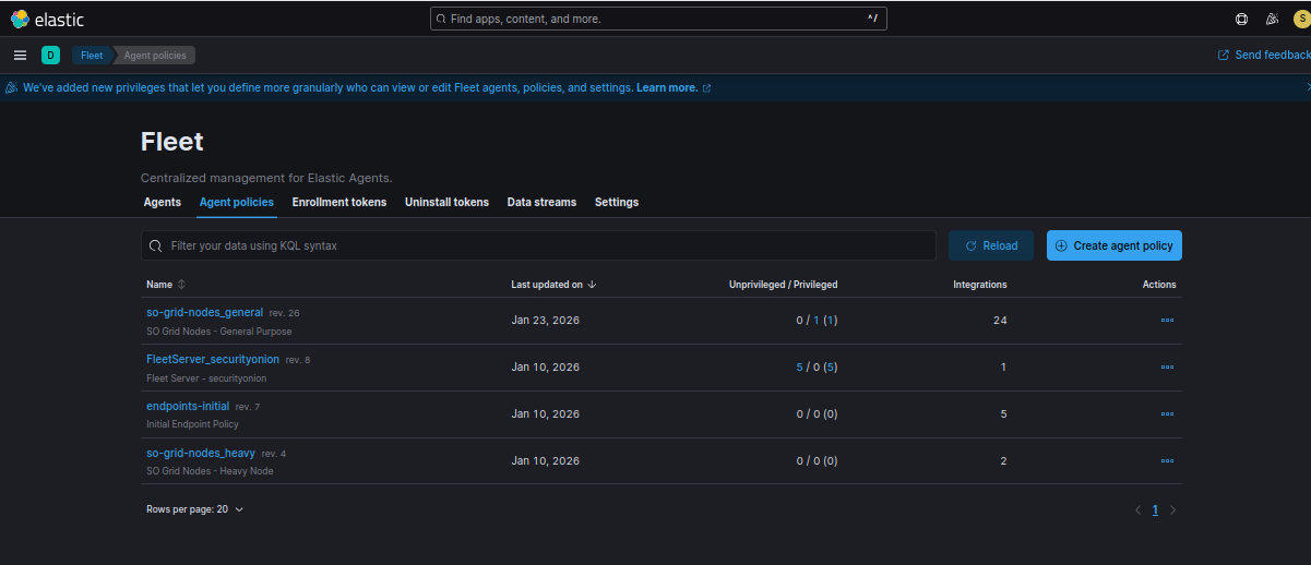 Head to the Security Onion web interface and click Elastic Fleet from the lefthand menu