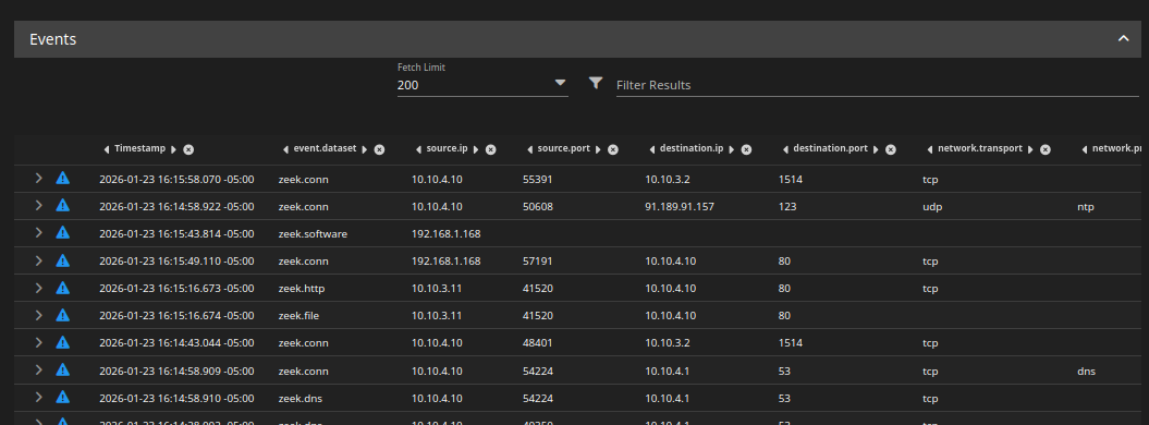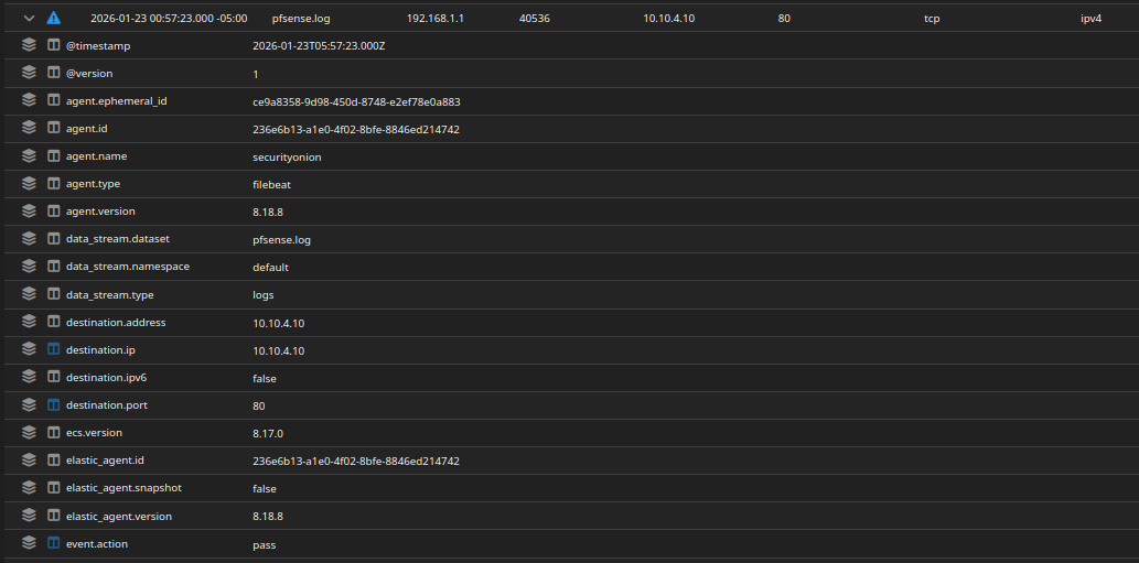- OPNsense log ingestion (traffic traversing the internal network)