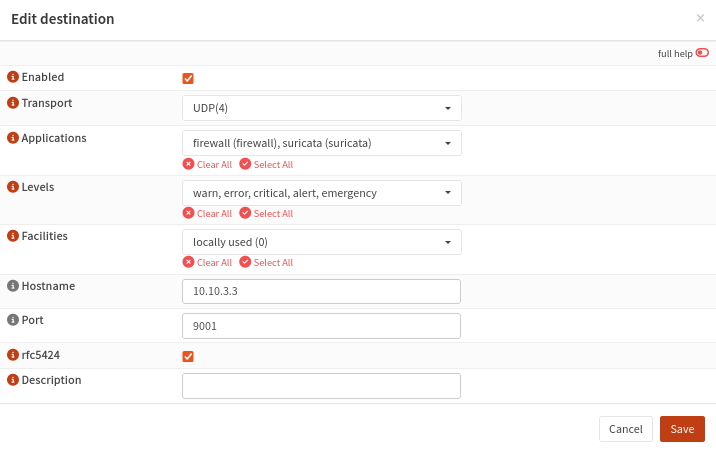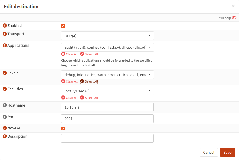 Change sysloghost to 0.0.0.0 so we can listen on all interfaces, leave everything else at default.