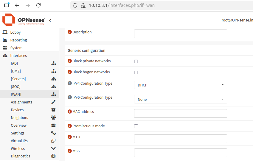 Under current grid value, enter the IP of OPNsense (10.10.3.1)