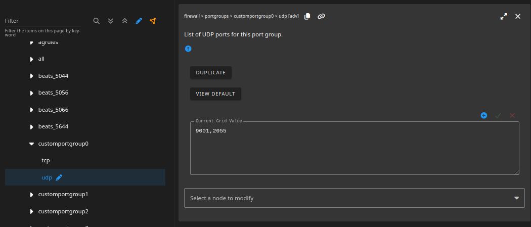 Next, head to Firewall > portgroups > customportgroup0 > udp
