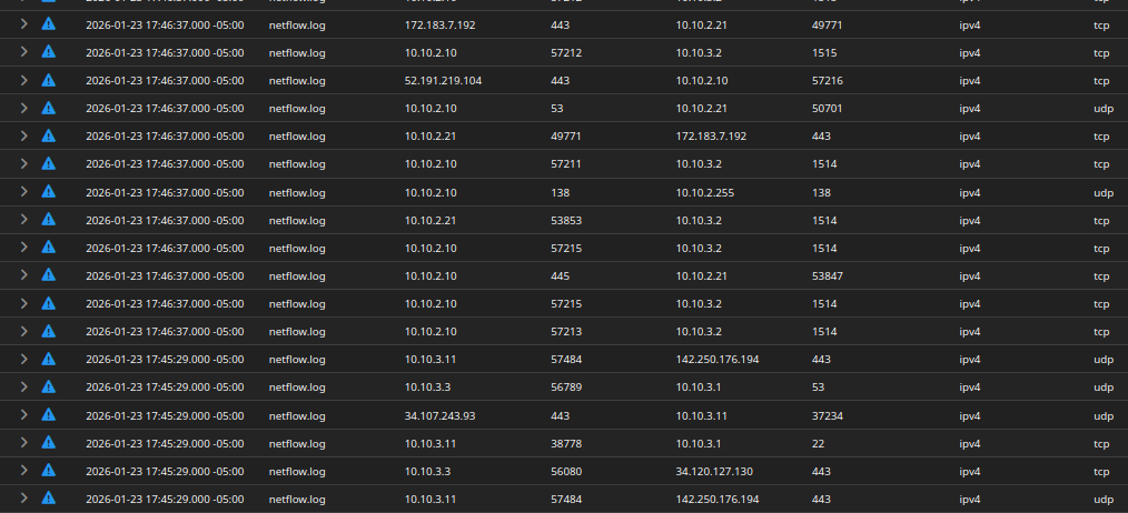 - NetFlow log ingestion (IP packet metadata)