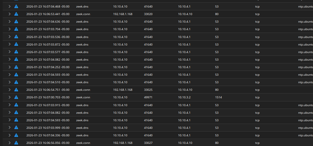 In my setup, there was tens of thousands of zeek.dns logs, pointing to ntp.ubuntu.com