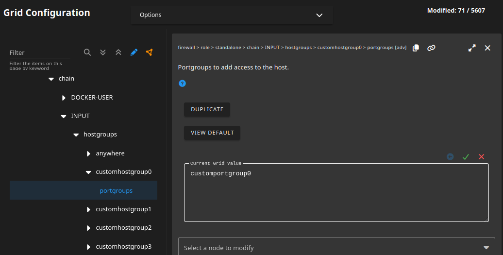 Next, head to firewall > role > standalone > chain > INPUT > hostgroups > customhostgroup0 > portgroups