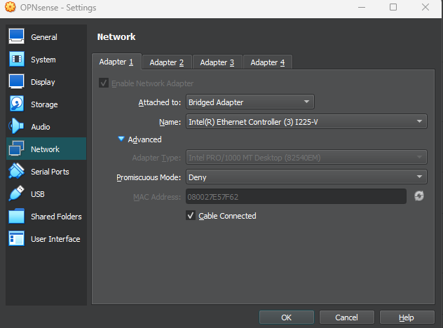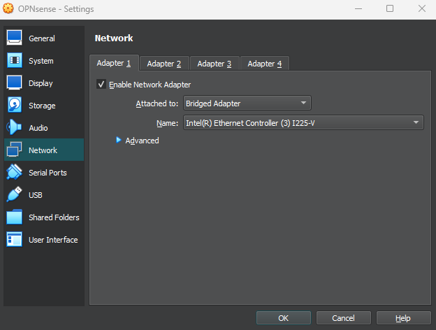 Set adapter 1 to Bridged