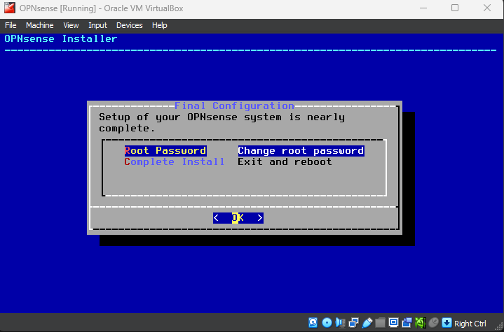 When the installation is complete, you will be prompted to set up a root password