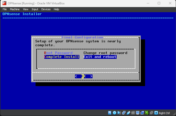Complete install and reboot