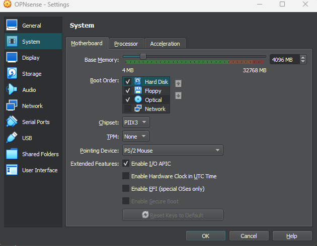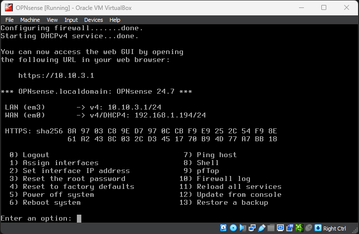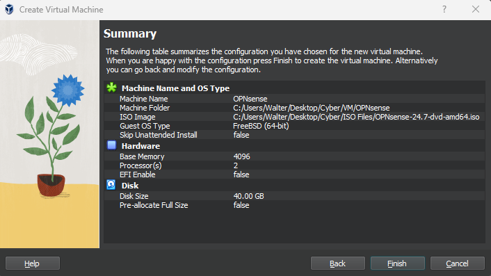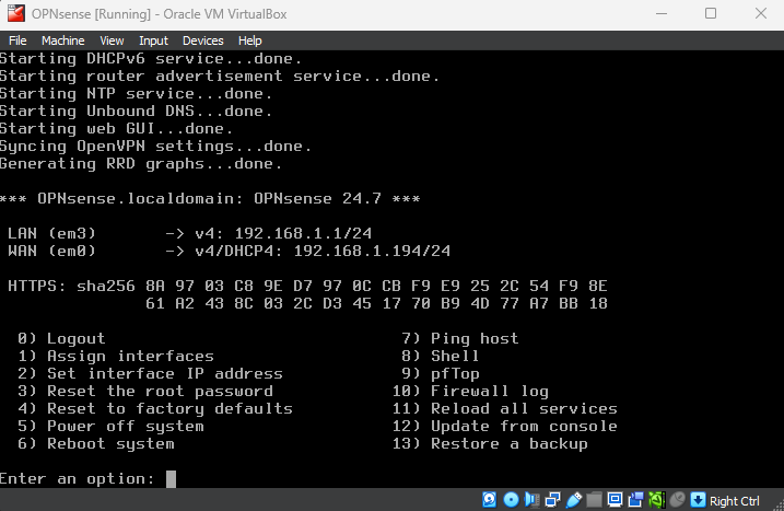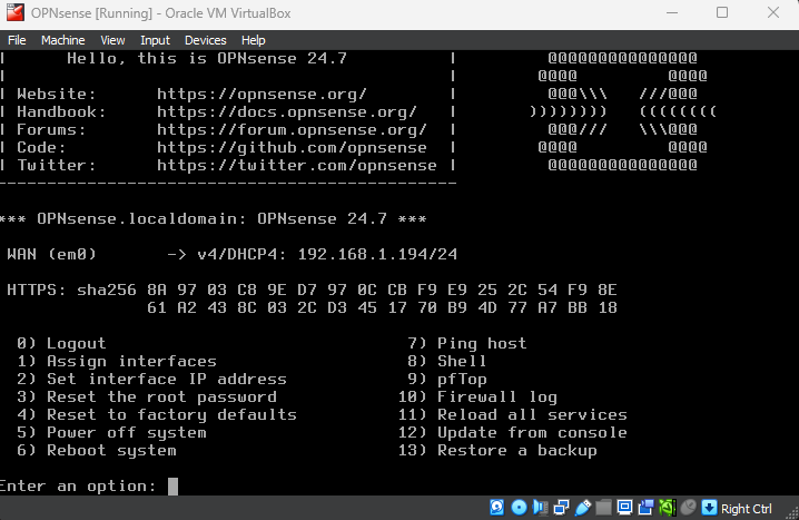 OPNsense firewall VM download and setup for VirtualBox.