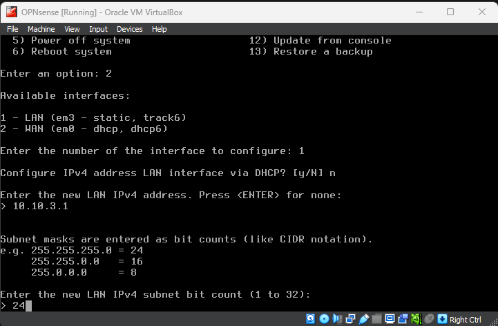 I will set the LAN interface to the admin LAN (10.10.3.0)
