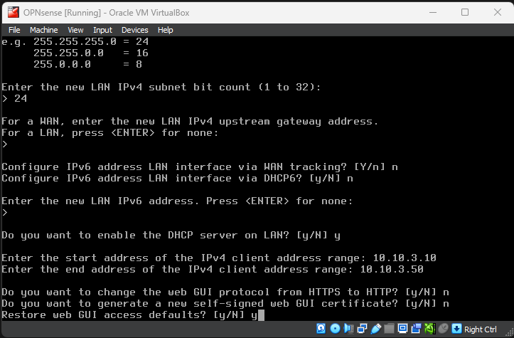 We will now assign the LAN interface so that we can access OPNsense from the web GUI and complete the configurations from there