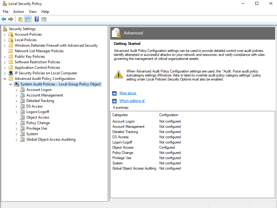 Head to Local Security Policy > Advanced Audit Policy Configuration > click on System Audit Policies - Local Group Policy Object