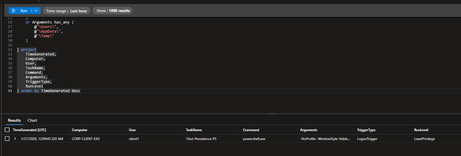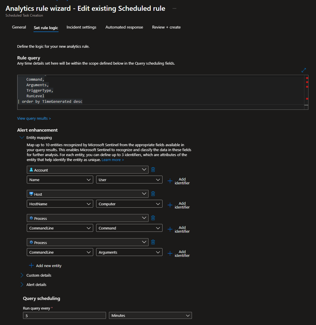 Available at: https://github.com/walterg7/azure-soc/blob/main/analytics-rules/scheduled-task-persistence.kql, or you can copy the query below: