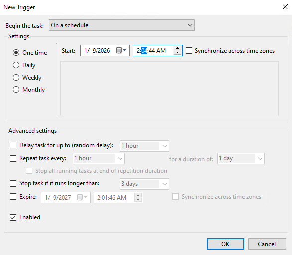 $trigger = New-ScheduledTaskTrigger -AtLogOn