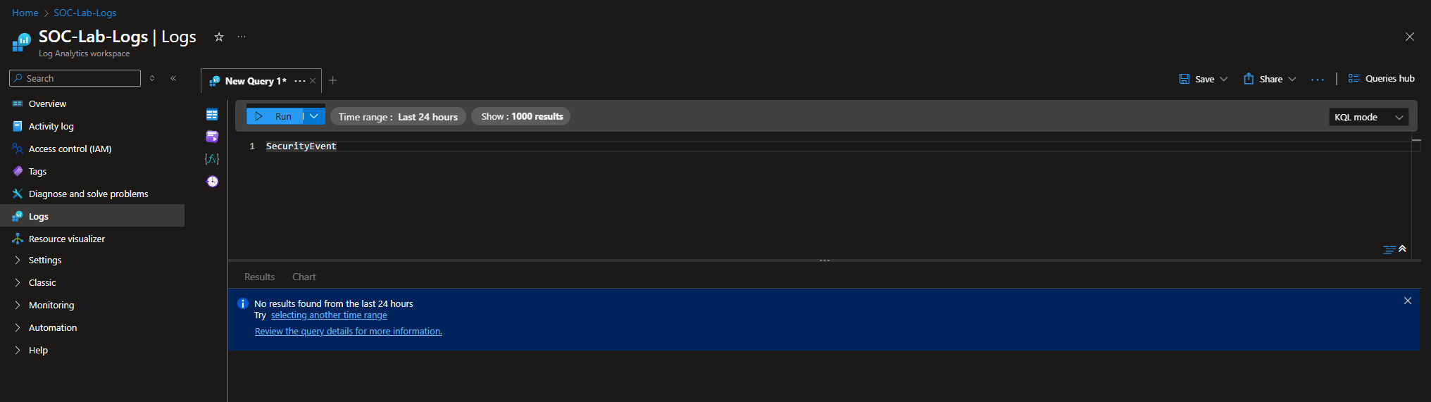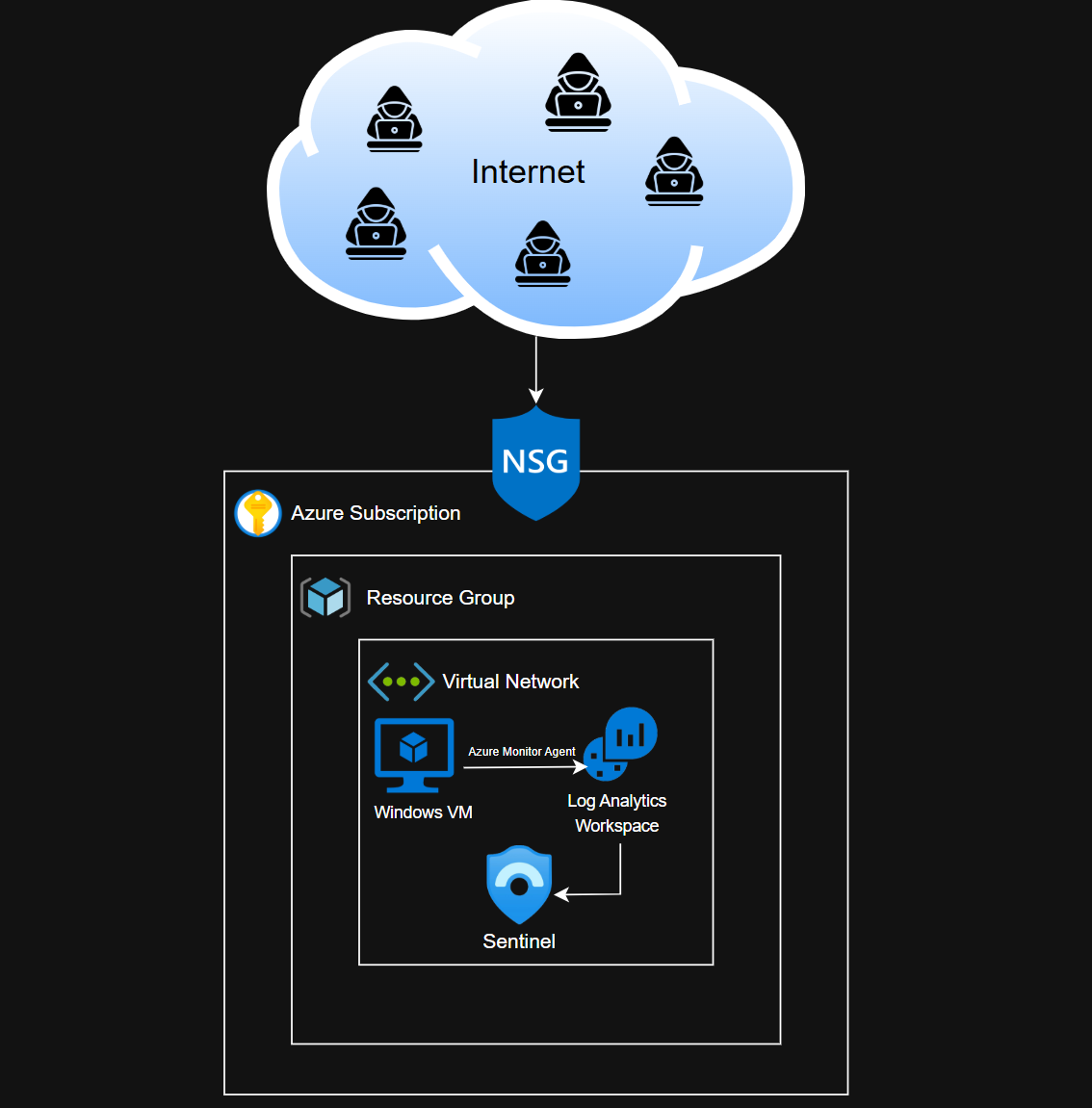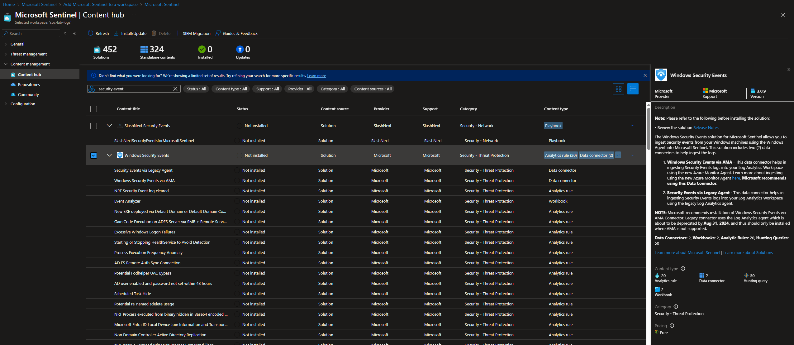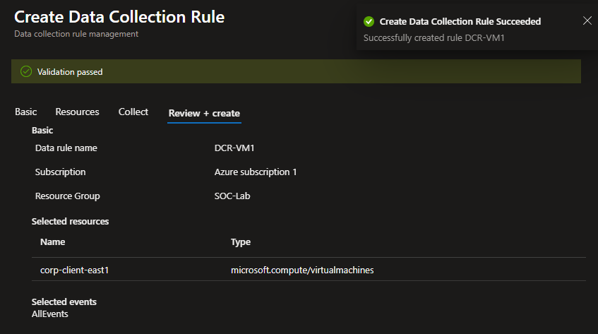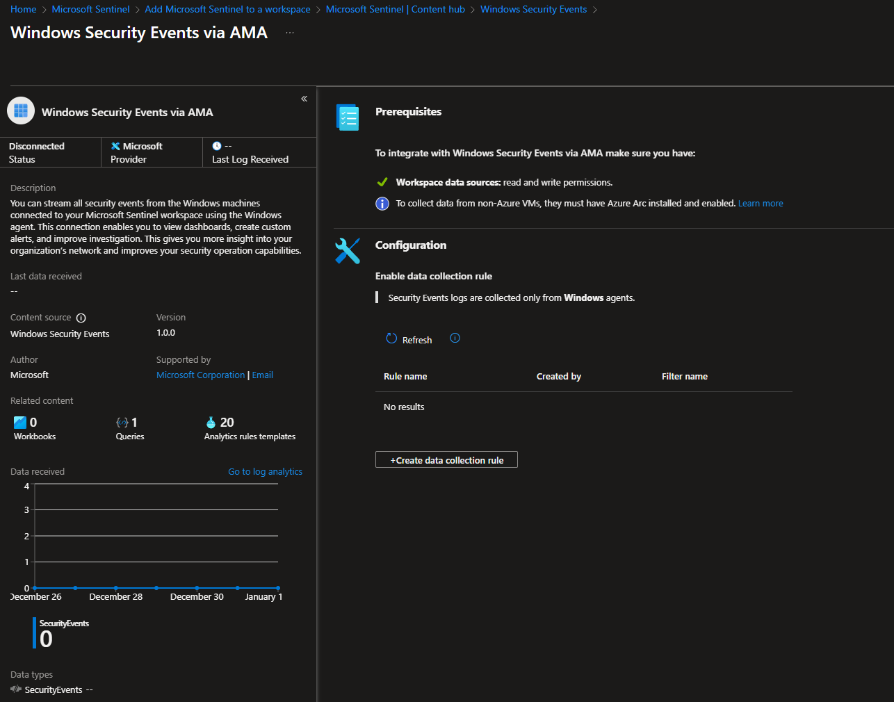 By the end of this exercise, our Windows VM will be able to forward logs to Logs Analytics Workspace via the Azure Monitor Agent. We should be able to view all security related logs from the Setninel SIEM.