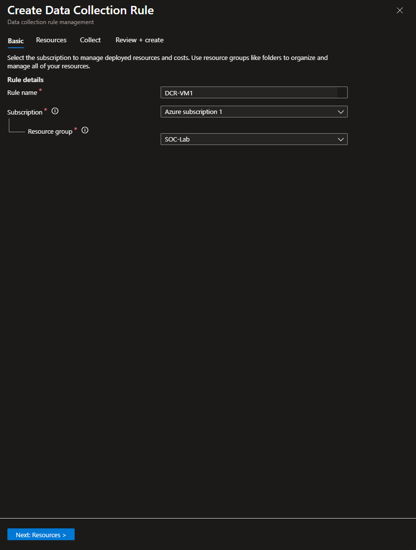This rule will be used by our VM to forward logs to LAW, so we can view them in Sentinel