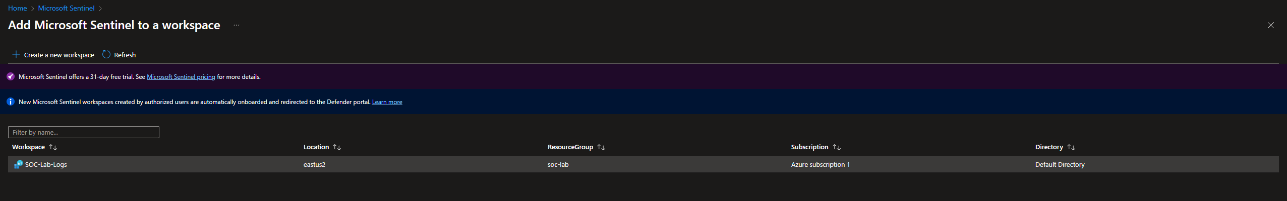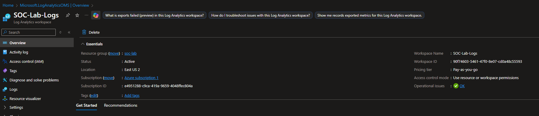 The Log Analytics Workspace (LAW) will be our centralized data store for logs.