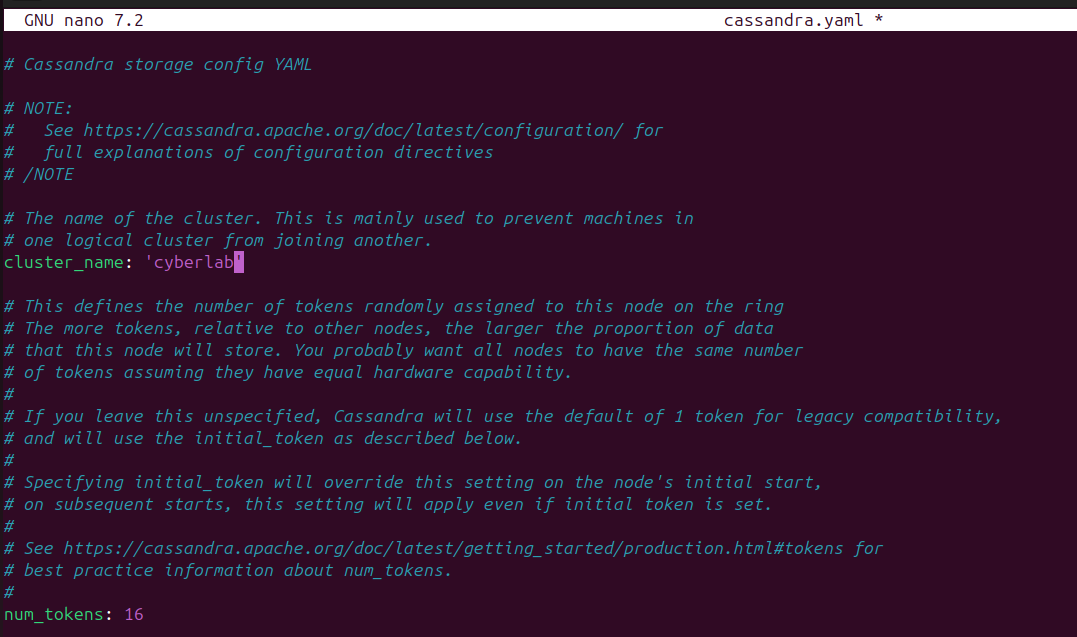 Run sudo nano /etc/cassandra/cassandra.yaml