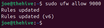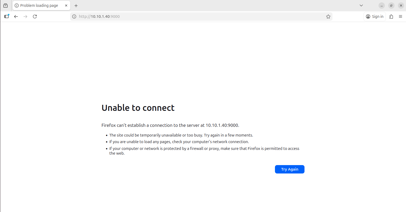 If you see “Unable to connect”, run this command: sudo ufw allow 9000