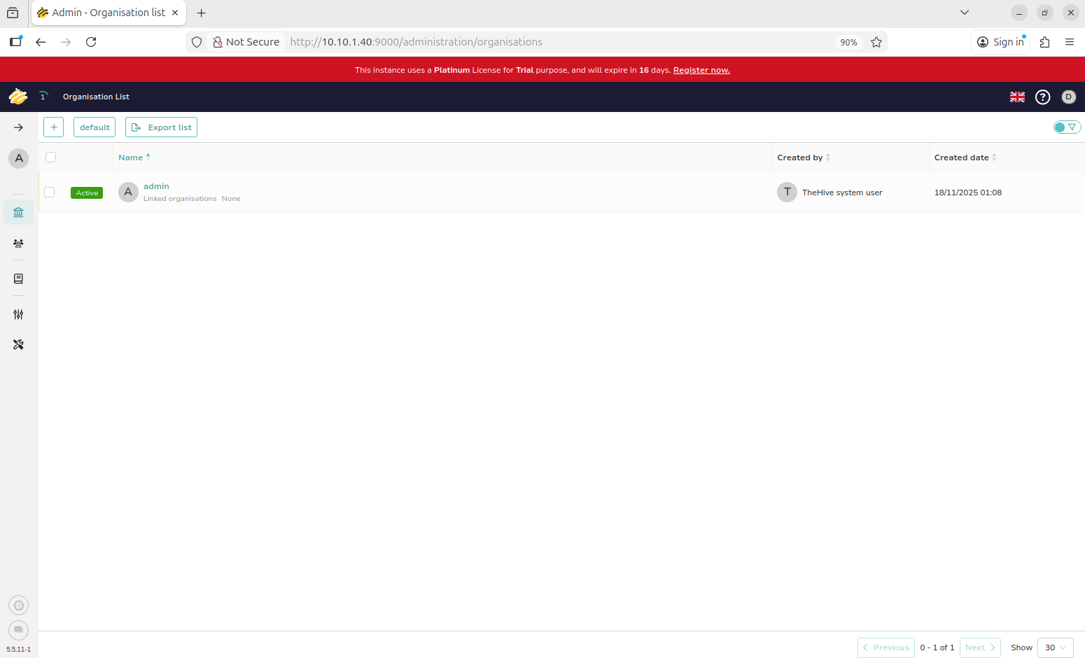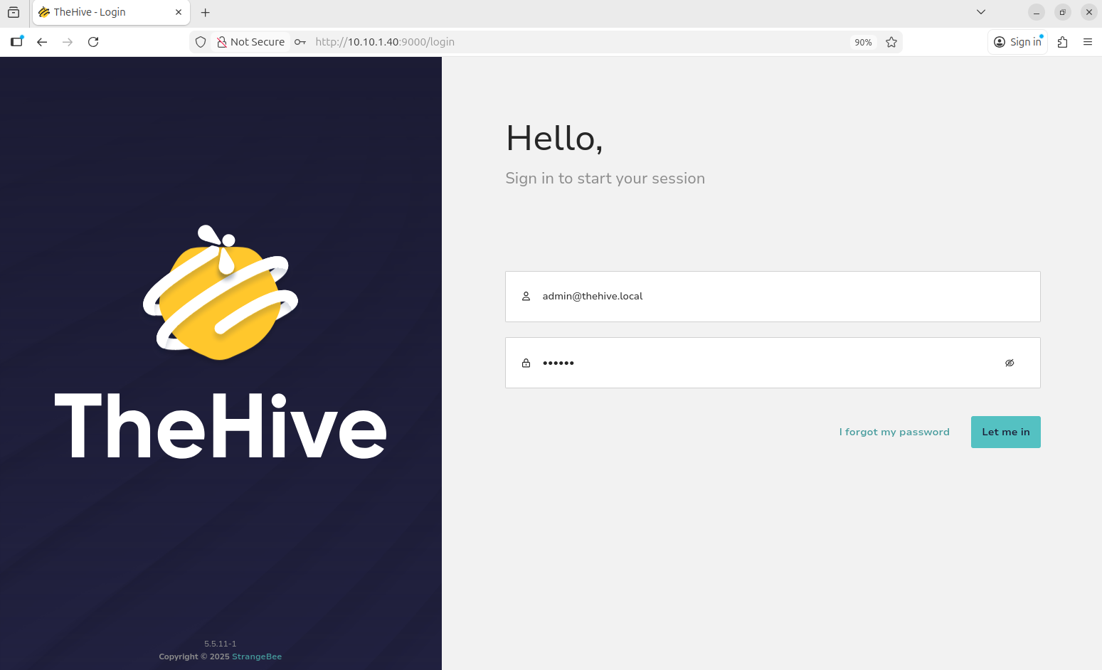 Access TheHive at http://10.10.1.40:9000 (or whatever the IP of your TheHive VM is)