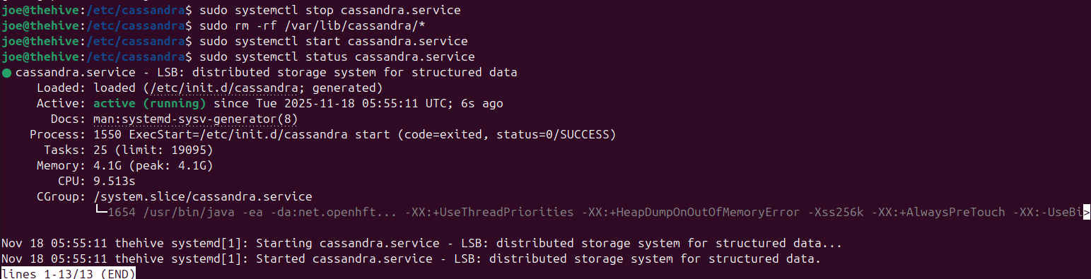 Then, run sudo rm -rf /var/lib/cassandra/*