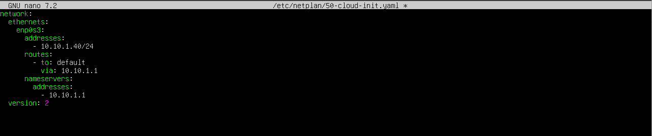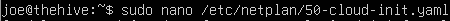 Log in as the user you created and run sudo nano /etc/netplan/50-cloud-init.yaml