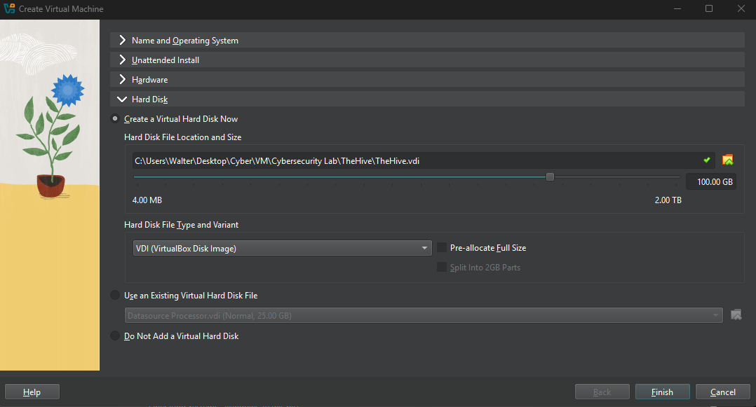 I set the storage to 100 GB