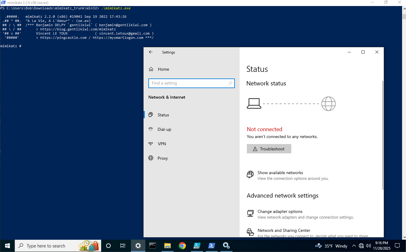 The bat file should automatically be executed right after, and we should be disconnected from the network.