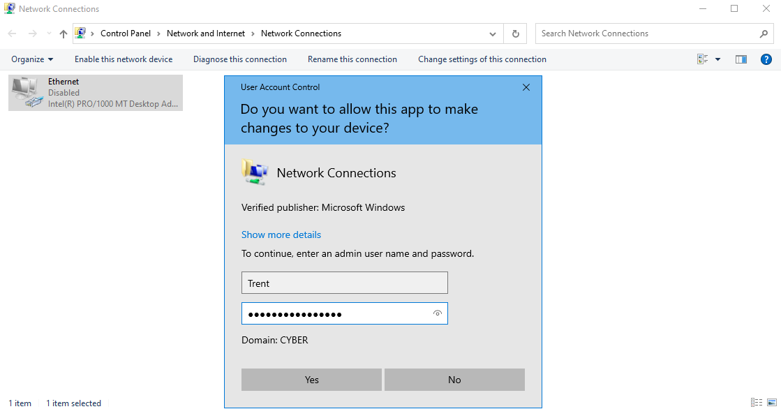 Reenable the network. Again, this will always have to be done manually and is intended behavior. This setup basically simulates the containment phase. In this scenario, an incident responder may want to collect artifacts and remove the malware before bringing the host back online.