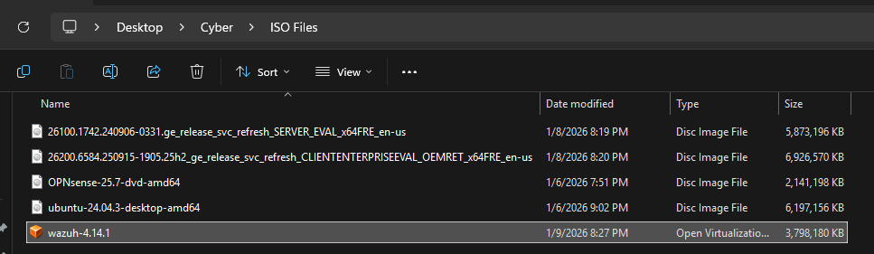 I am using Wazuh version 4.14.2 for this lab - https://documentation.wazuh.com/current/deployment-options/virtual-machine/virtual-machine.html