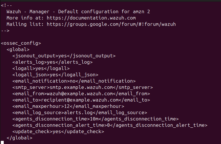 Under ossec_config, change the values of alerts_log, logall, and logall_json to yes