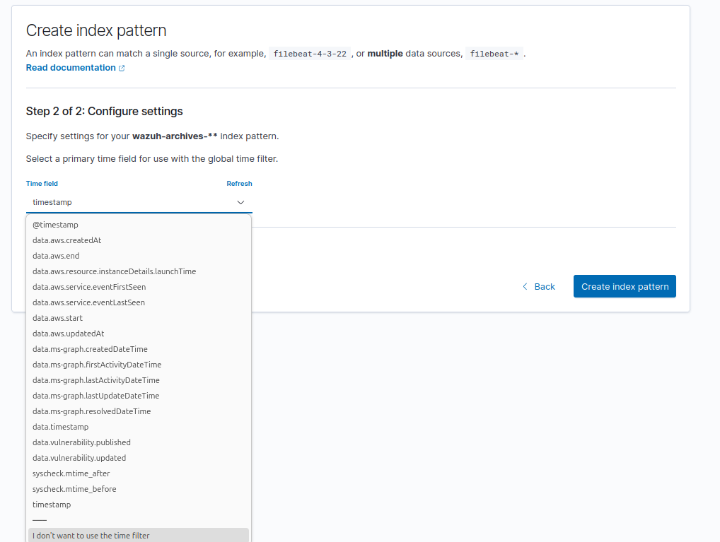 The index pattern should match a source by the name of wazuh-archives-4.x-yyyy.mm.dd