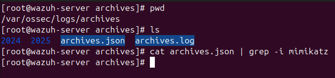 Since we do not have archive logs enabled, we did not see the log generated by the Mimikatz execution.