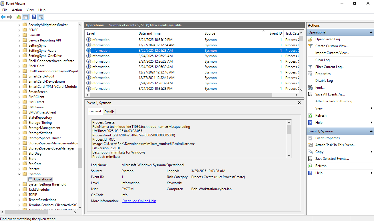 Head to Application and Services Logs > Microsoft > Windows > Sysmon > Operational