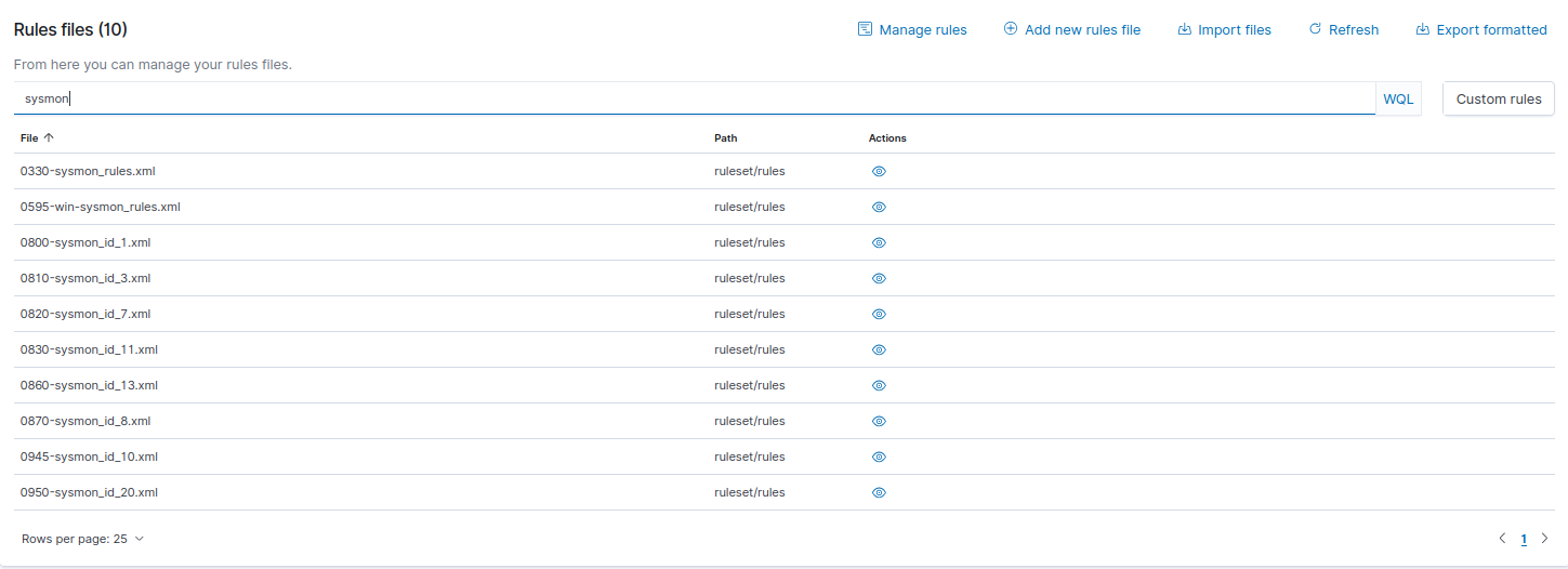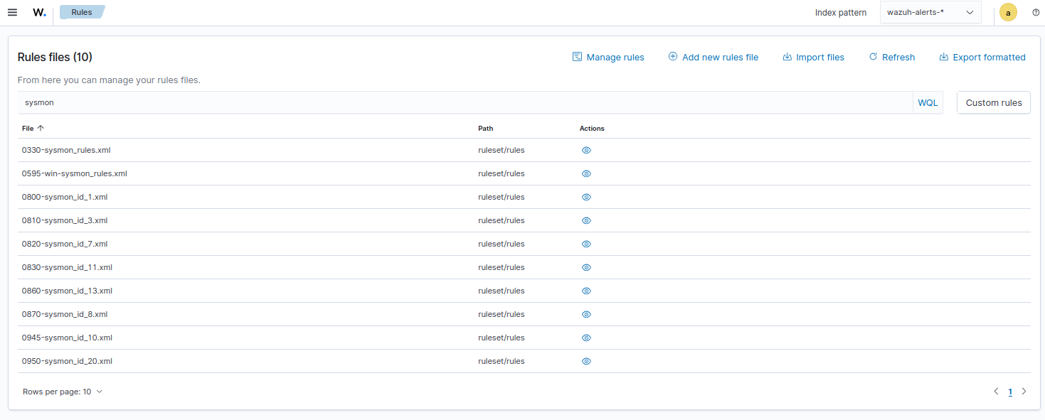 click the eye icon under actions for 0800-sysmon_id_1 (this targets Event ID 1: Process Creation)