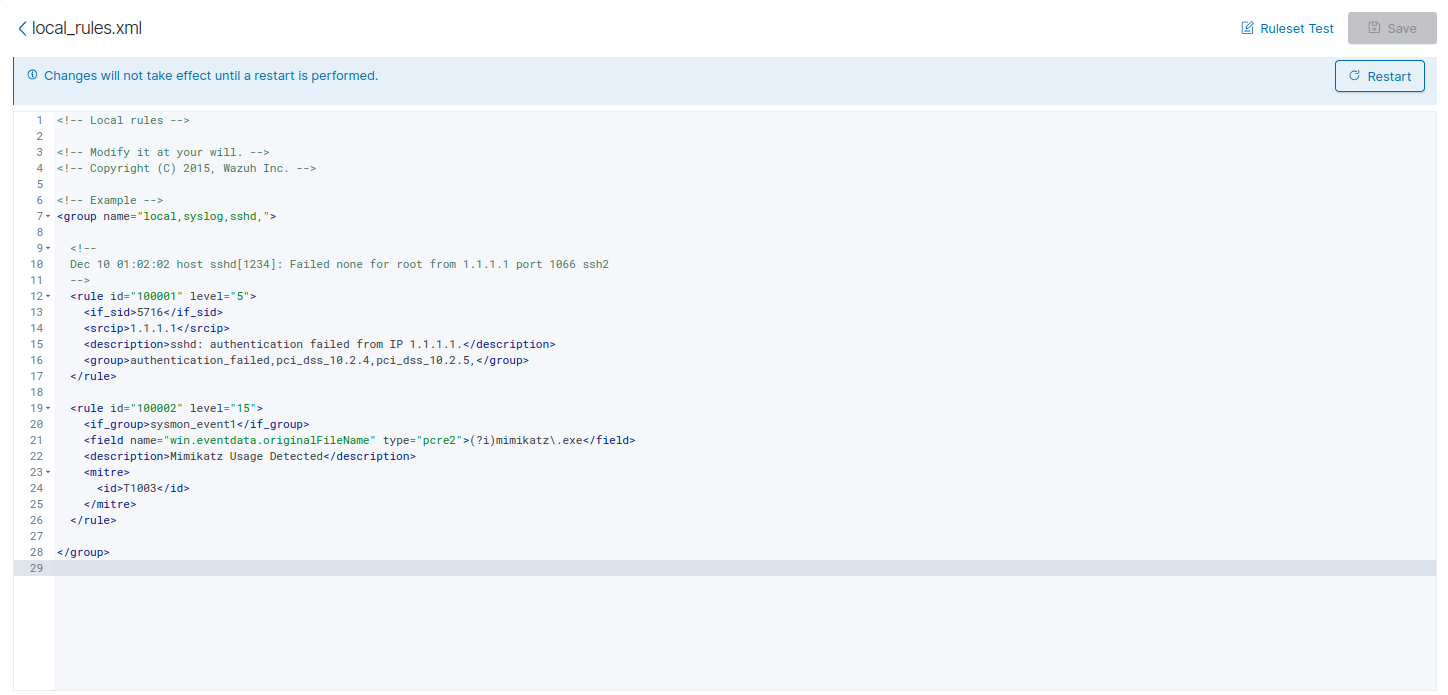 Then run systemctl restart wazuh-manager to make the changes go into effect