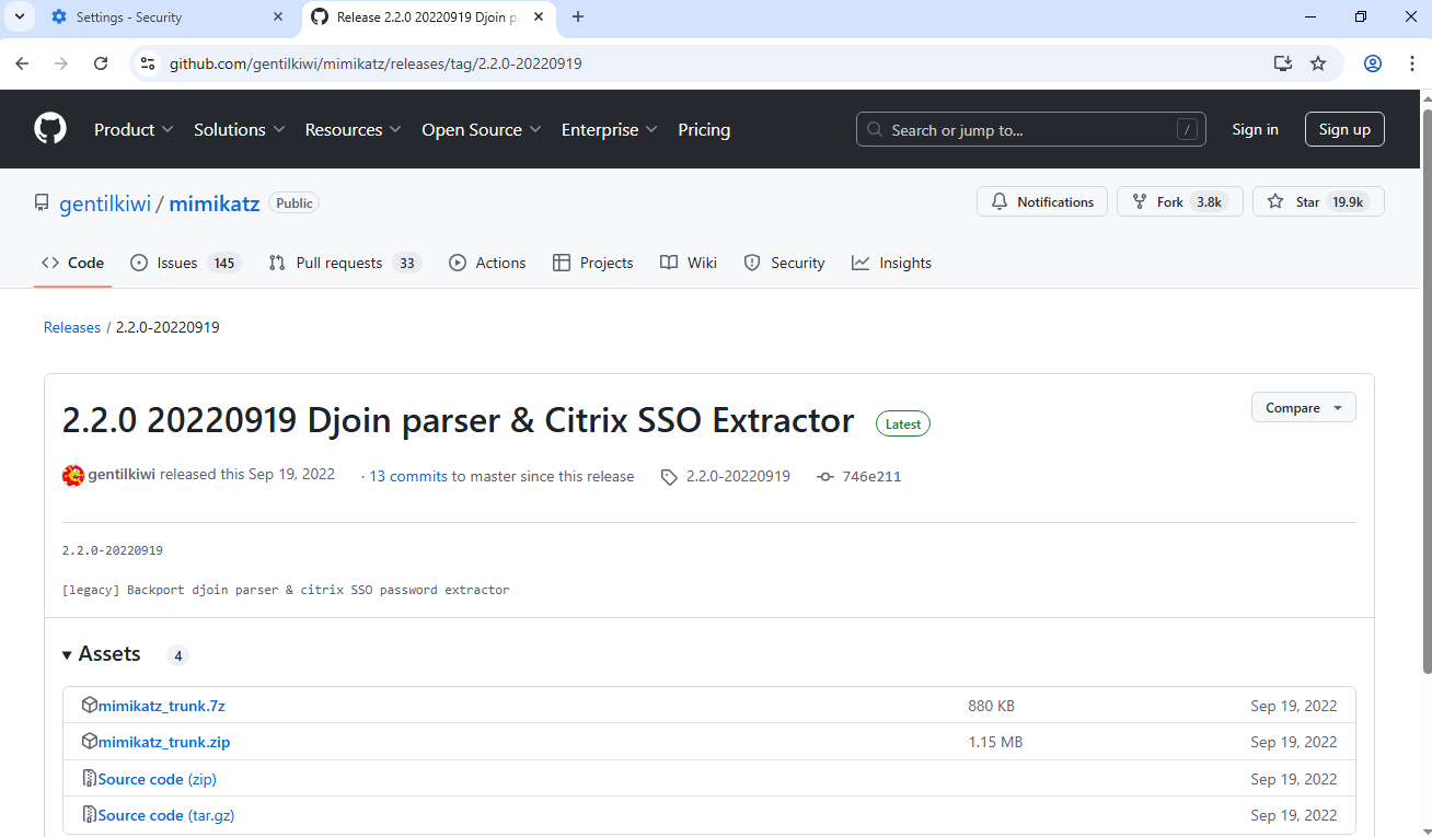 For the sake of this test, we will download Mimikatz directly from the GitHub repository.