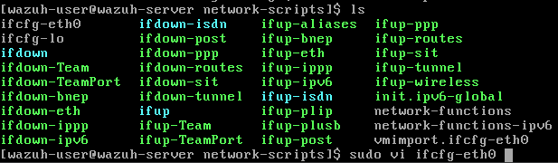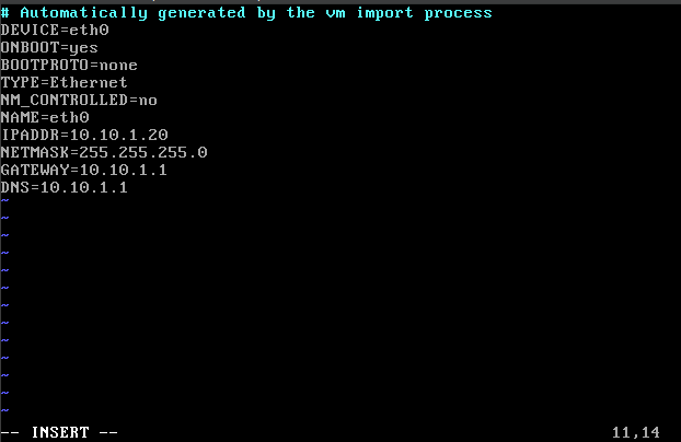 Run sudo vi /etc/sysconfig/network-scripts/ifcfg-eth0