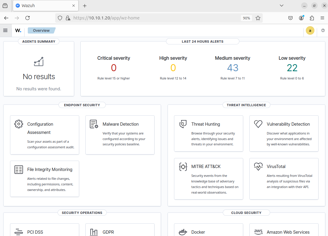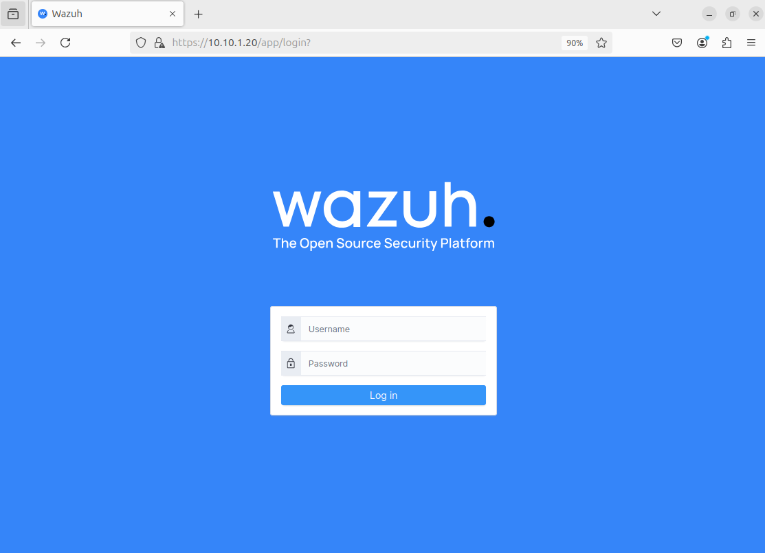 Enter the Wazuh IP address (10.10.1.20) on a web browser.