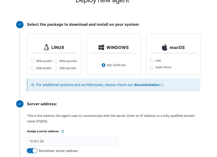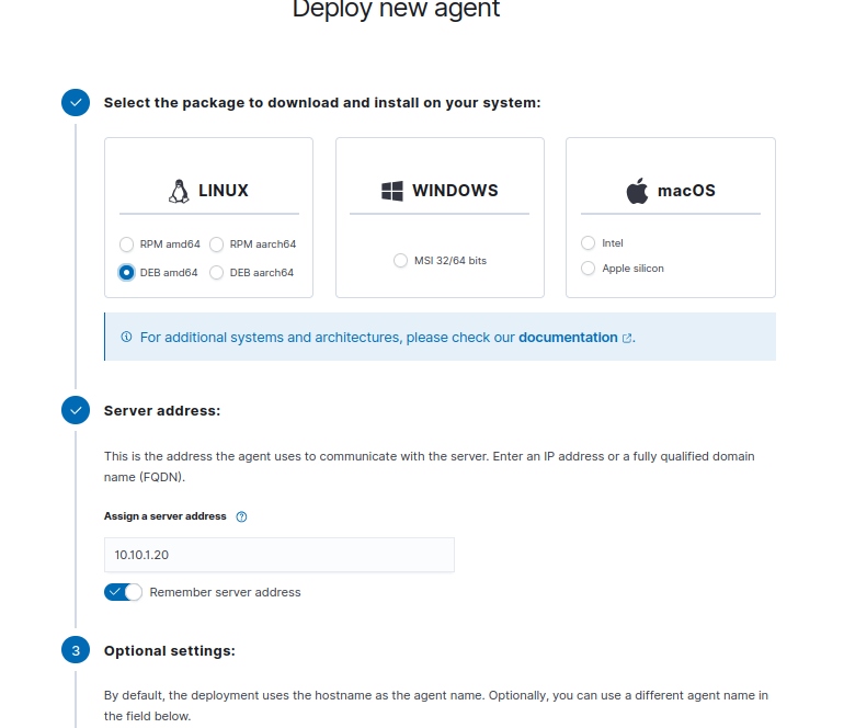 Enter the Wazuh server address (10.10.1.20)