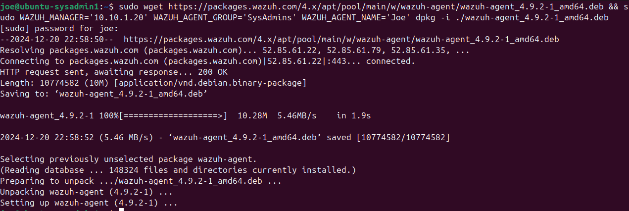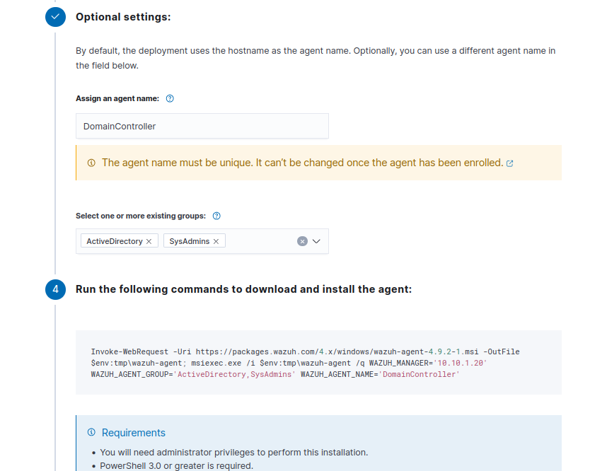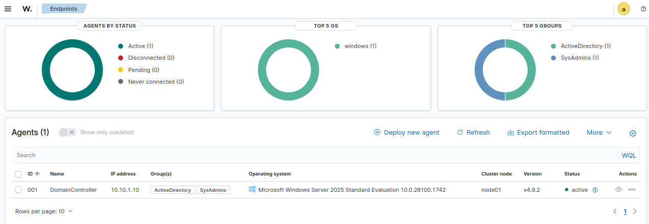 Follow the same process to deploy the Wazuh agents on the rest of the Windows 10 clients.