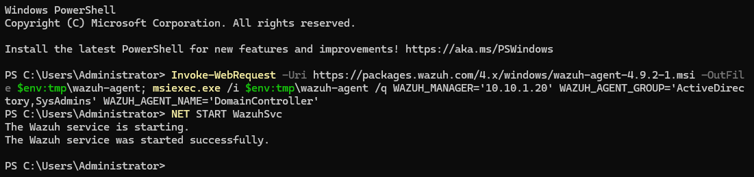 When the command is finished running, run NET START WazuhSvc