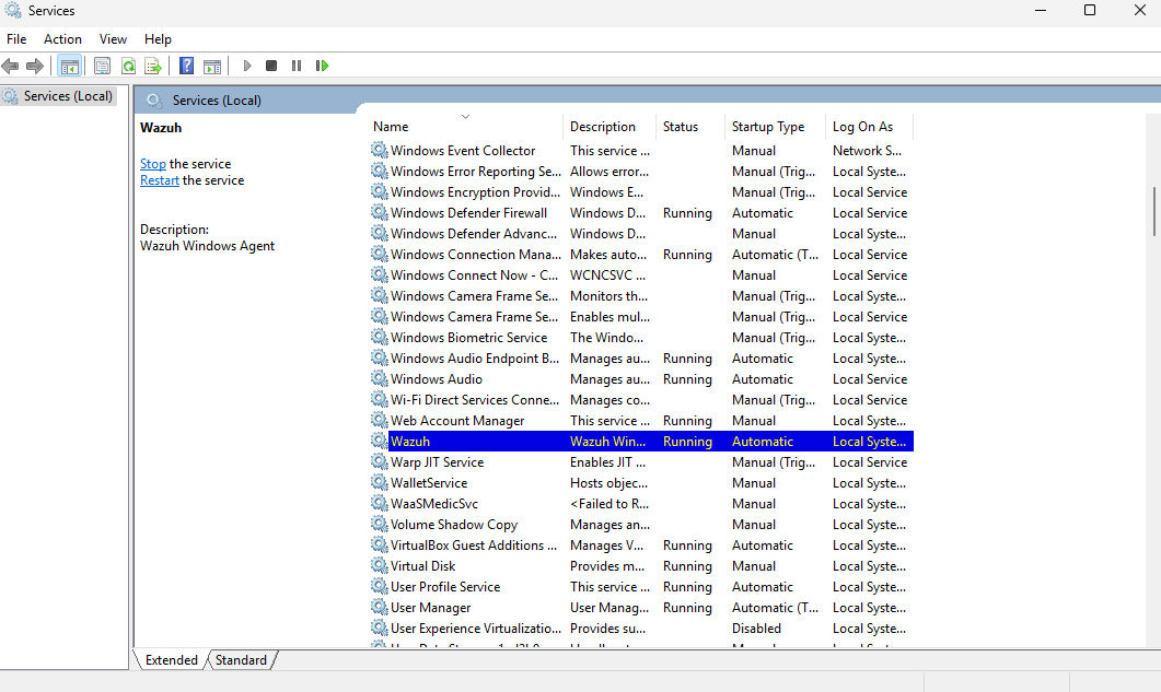 Head to Services and look for Wazuh to make sure it is running