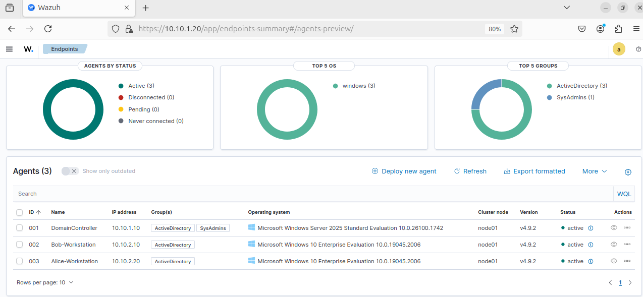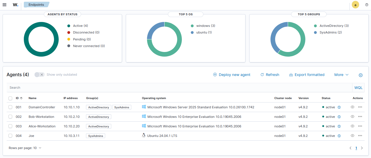 Now all of our VMs have Wazuh agents set up.