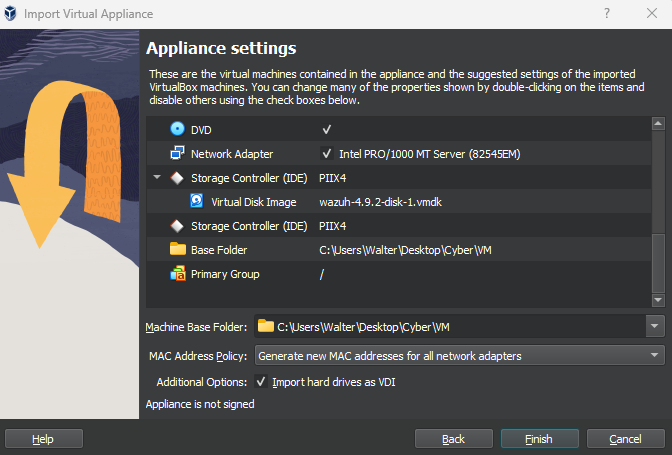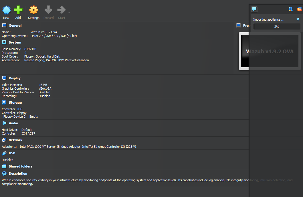 Select the Wazuh OVA file
