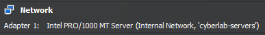 When all the updates have been applied, power off the VM and set Adapter 1 to cyberlab-servers