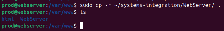 I symlinked /var/www/WebServer with /home/prod/systems-integration .