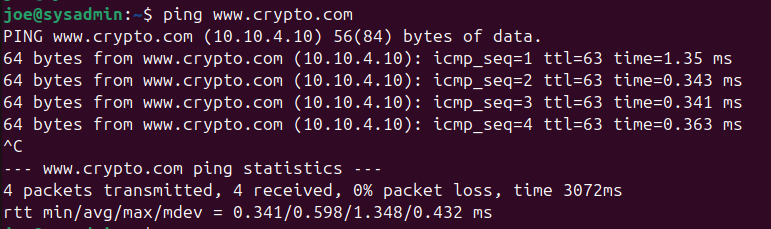 Notice that when I ping www.crypto.com, it resolves the domain name to the Web Server VM.
